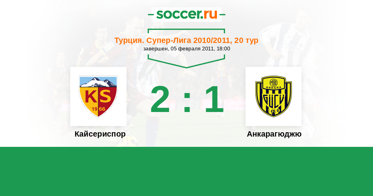 Турция. Суперлига 21.03.2010 Анкарагюджю Логотип футбольный клуб Анкарагюджю 3:0 Логотип футбольный клуб Кайсериспор Кайсериспор