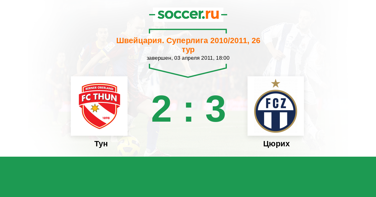 Швейцария. Суперлига 25.05.2011 Цюрих Логотип футбольный клуб Цюрих 1:0 Логотип футбольный клуб Тун Тун