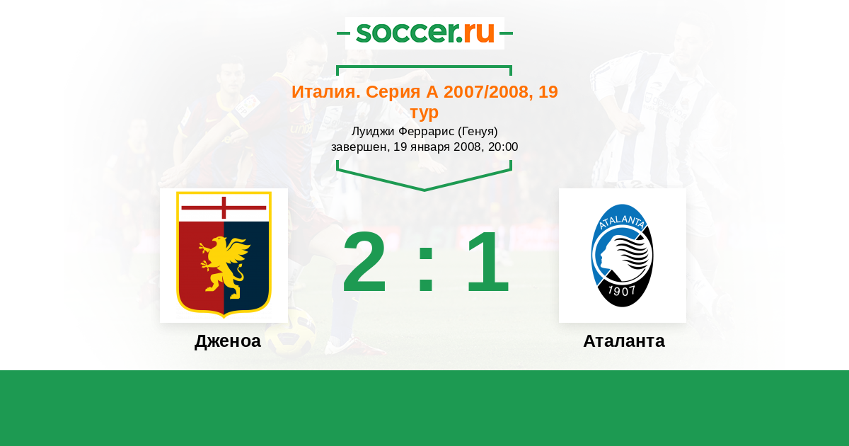 Италия. Серия А 18.05.2008 Аталанта Логотип футбольный клуб Аталанта (Бергамо) 2:0 Логотип футбольный клуб Дженоа (Генуя) Дженоа