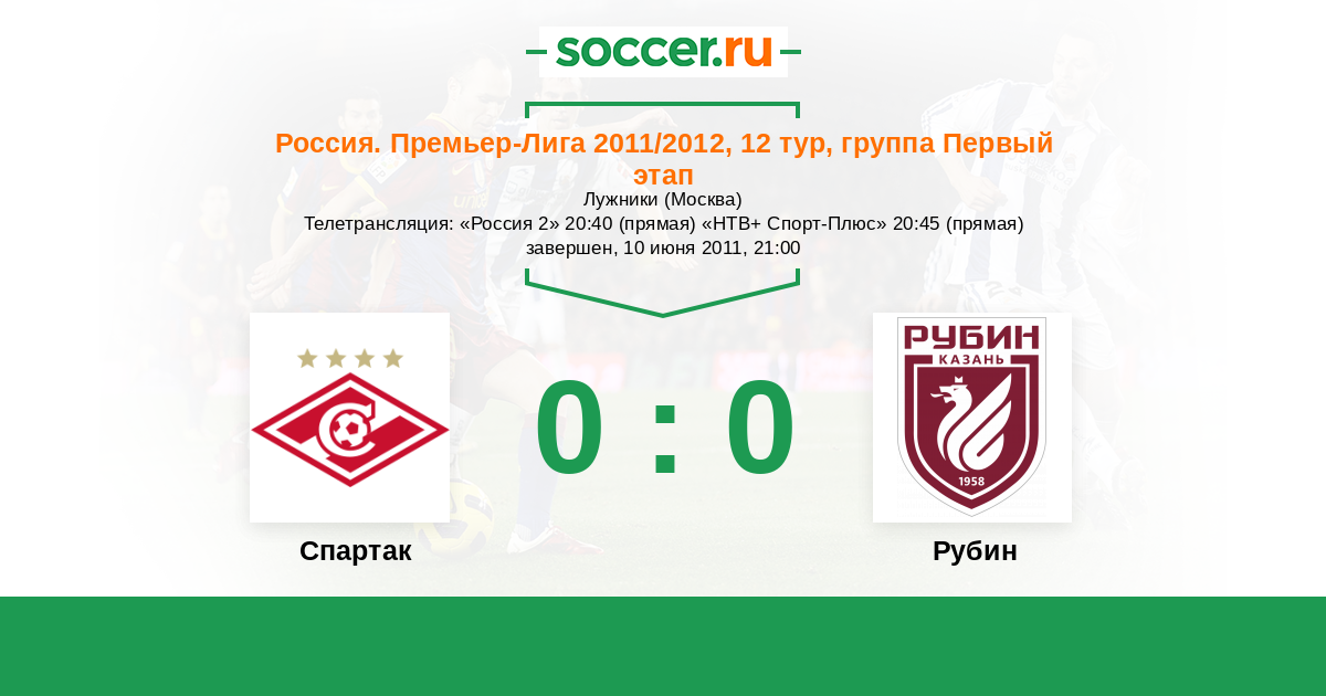 Россия. Премьер-Лига 15.04.2012 Спартак Логотип футбольный клуб Спартак (Москва) 2:0 Логотип футбольный клуб Рубин (Казань) Рубин