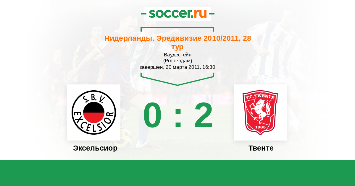 Нидерланды. Эредивизи 06.11.2010 Твенте Логотип футбольный клуб Твенте (Энсхеде) 2:1 Логотип футбольный клуб Эксельсиор (Роттердам) Эксельсиор