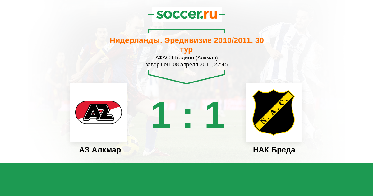Нидерланды. Эредивизи 18.03.2012 АЗ Алкмар Логотип футбольный клуб АЗ Алкмар 0:0 Логотип футбольный клуб НАК Бреда НАК Бреда