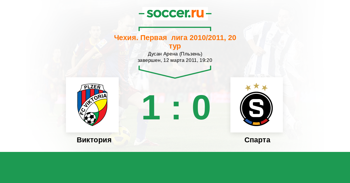 Чехия. Первая Лига 21.08.2010 Спарта Логотип футбольный клуб Спарта (Прага) 0:1 Логотип футбольный клуб Виктория (Пльзень) Виктория