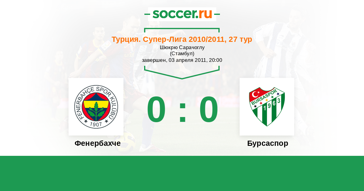 Турция. Суперлига 29.10.2010 Бурсаспор Логотип футбольный клуб Бурсаспор 1:1 Логотип футбольный клуб Фенербахче (Стамбул) Фенербахче