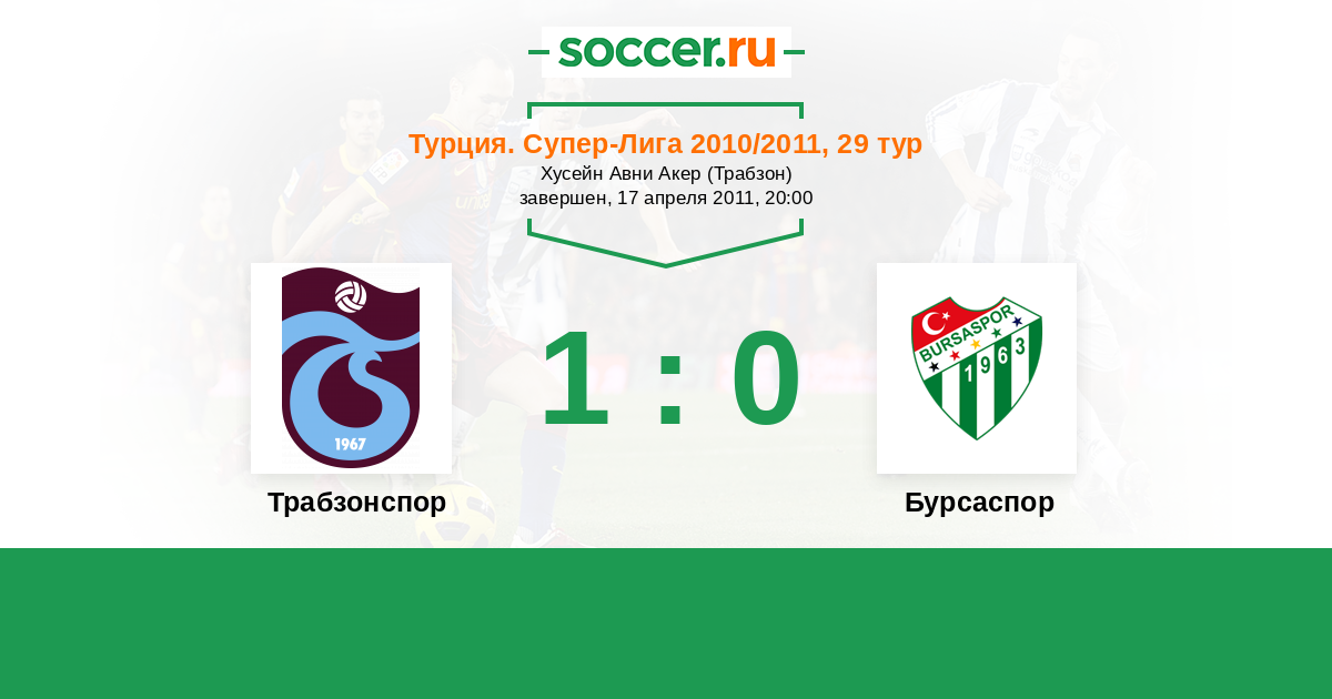 Турция. Суперлига 22.10.2011 Бурсаспор Логотип футбольный клуб Бурсаспор 1:1 Логотип футбольный клуб Трабзонспор Трабзонспор
