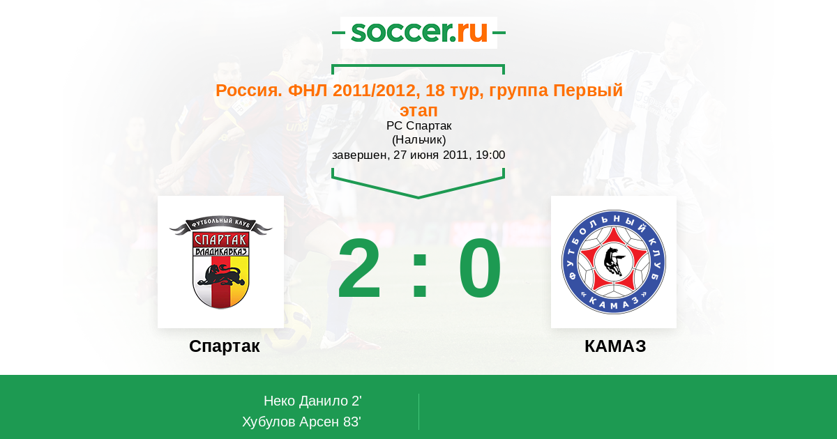 Россия. Вторая лига. Группа 1 21.09.2019 Спартак-Нальчик   3:0   Спартак