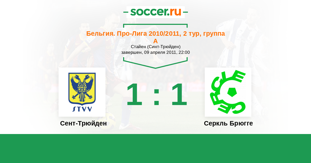 Бельгия. Про-Лига 01.10.2011 Серкль Брюгге Логотип футбольный клуб Серкль Брюгге 2:2 Логотип футбольный клуб Сент-Трюйден (Синт-Трёйден) Сент-Трюйден