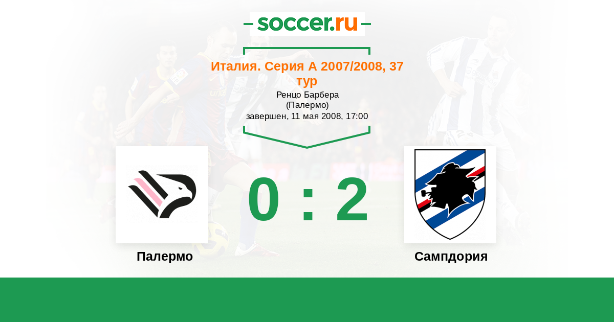 Италия. Серия А 31.05.2009 Палермо Логотип футбольный клуб Палермо 2:2 Логотип футбольный клуб Сампдория (Генуя) Сампдория