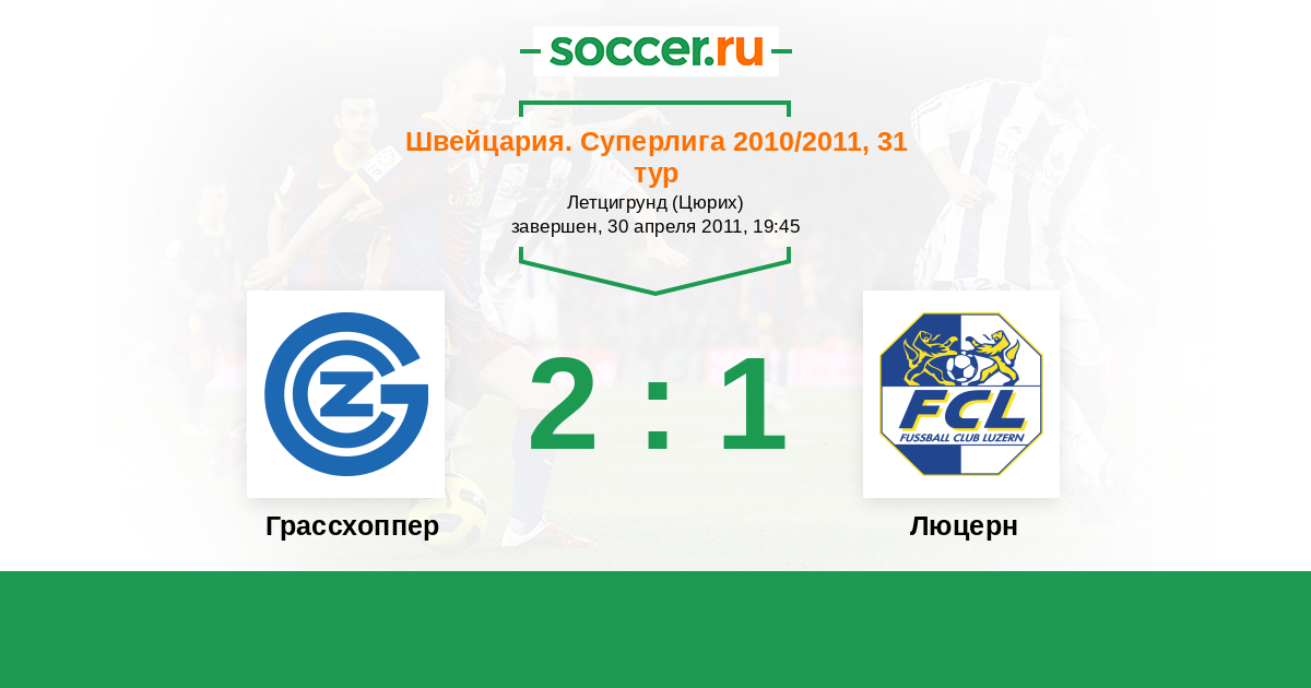 Швейцария. Суперлига 12.03.2011 Люцерн Логотип футбольный клуб Люцерн 1:0 Логотип футбольный клуб Грассхоппер (Цюрих) Грассхоппер