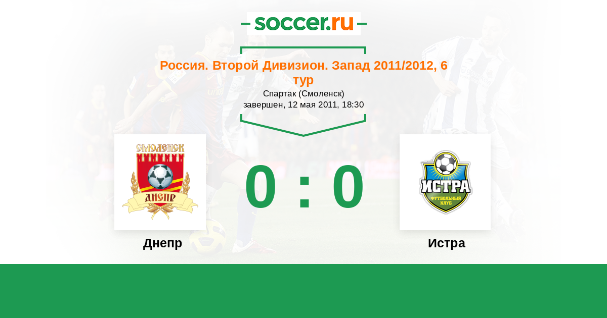 Россия. Вторая лига. Группа 2 29.10.2011 Днепр Логотип футбольный клуб Днепр (Смоленск) 2:1 Логотип футбольный клуб Истра Истра