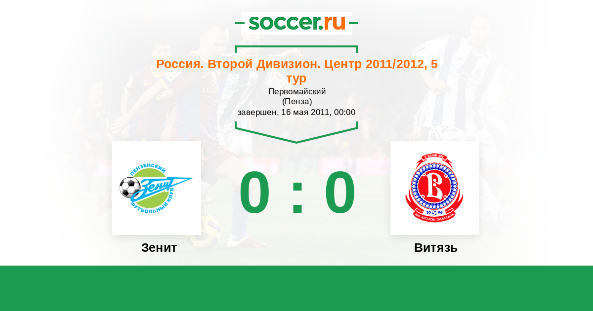 Россия. Вторая лига. Группа 3 12.05.2015 Витязь Логотип футбольный клуб Витязь (Подольск) 1:1 Логотип футбольный клуб Зенит (Пенза) Зенит