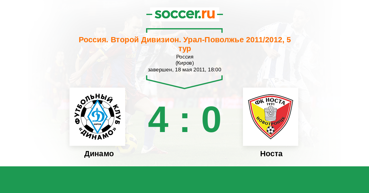 Россия. Вторая лига. Группа 4 11.05.2010 Динамо Киров Логотип футбольный клуб Динамо Киров 1:1 Логотип футбольный клуб Носта (Новотроицк) Носта