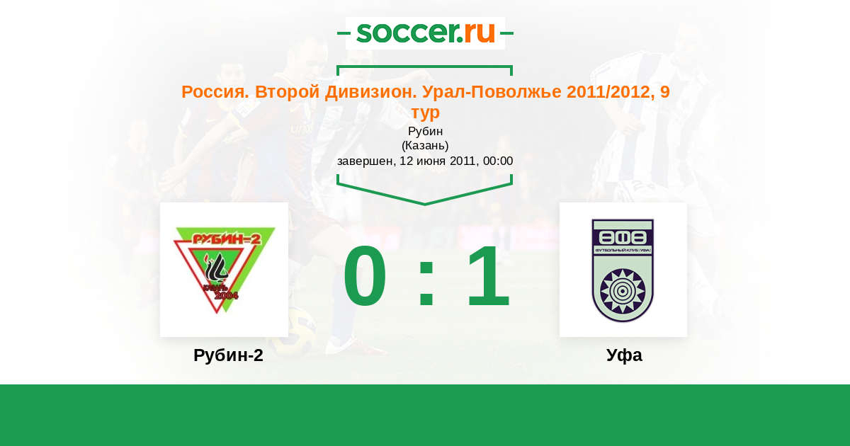 Россия. Вторая лига. Группа 4 11.05.2012 Рубин-2 Логотип футбольный клуб Рубин-2 (Казань) 2:2 Логотип футбольный клуб Уфа Уфа