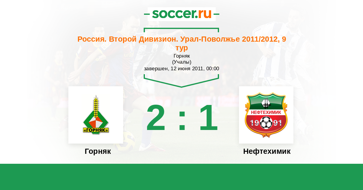 Россия. Вторая лига. Группа 4 12.05.2012 Горняк Логотип футбольный клуб Горняк (Учалы) 1:3 Логотип футбольный клуб Нефтехимик (Нижнекамск) Нефтехимик