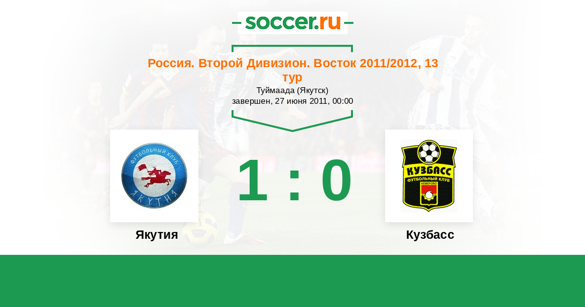Россия. 2-й дивизион. Восток 29.05.2012 Якутия Логотип футбольный клуб Якутия (Якутск) 2:1 Логотип футбольный клуб Кузбасс (Кемерово) Кузбасс