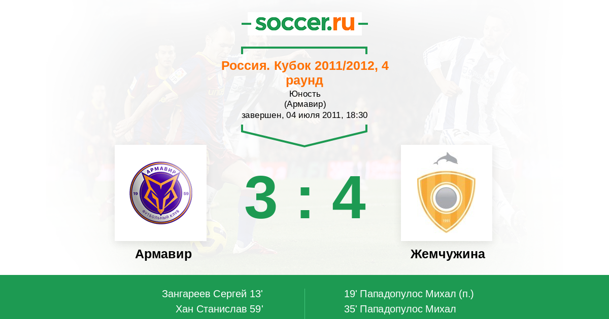 Россия. Вторая лига. Группа 1 24.05.2009 Жемчужина Логотип футбольный клуб Жемчужина (Сочи) 5:2 Логотип футбольный клуб Торпедо Армавир Торпедо Армавир