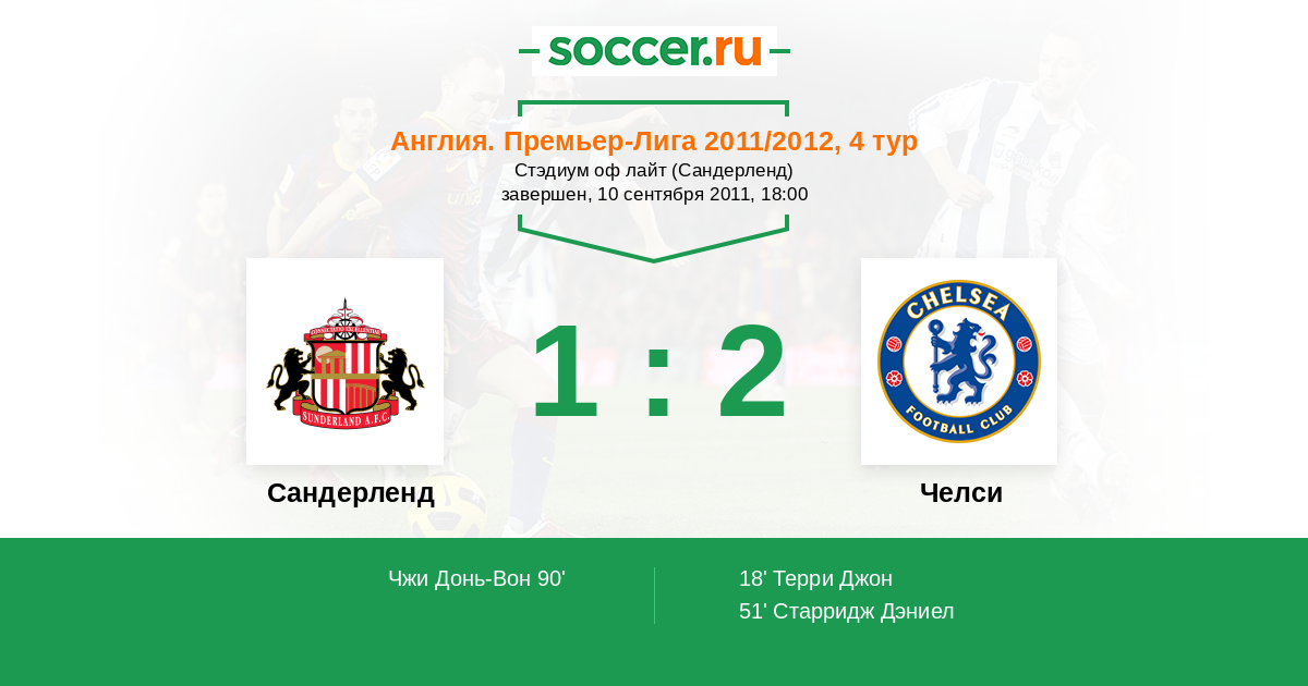Англия. Премьер-Лига 14.01.2012 Челси Логотип футбольный клуб Челси (Лондон) 1:0 Логотип футбольный клуб Сандерленд Сандерленд