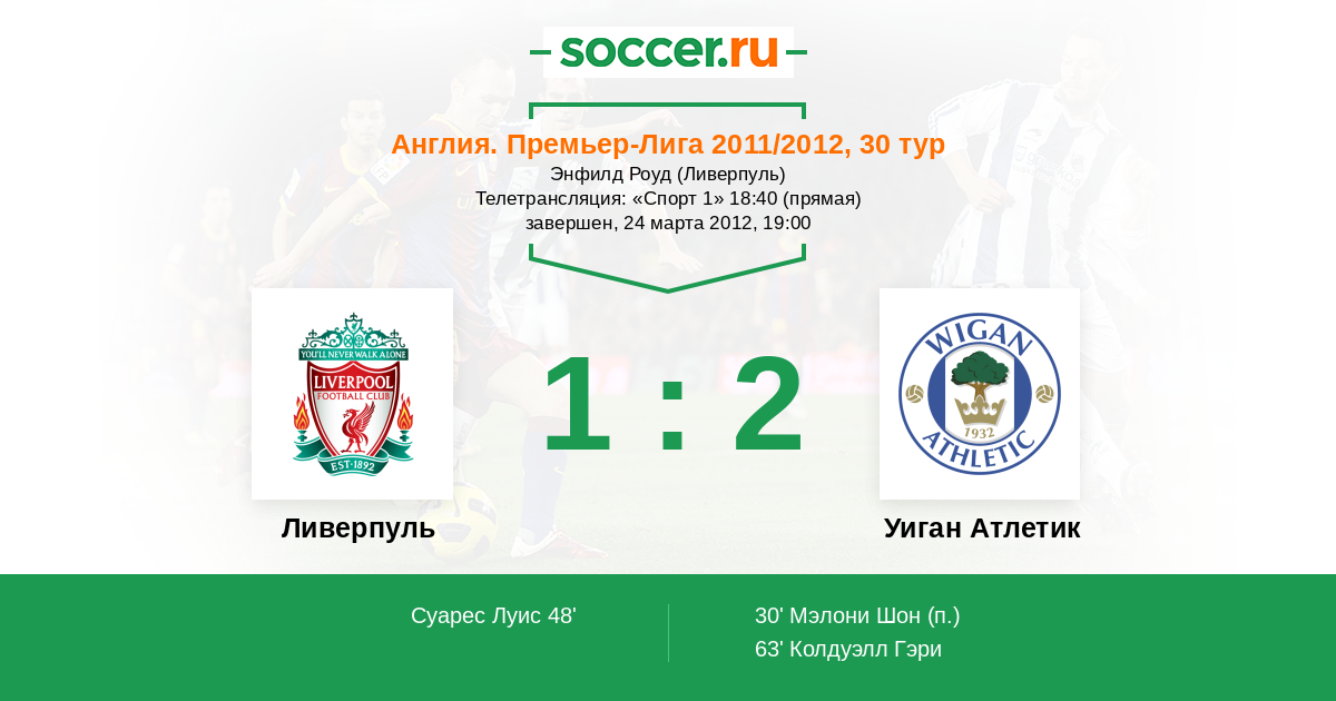 Англия. Премьер-Лига 12.02.2011 Ливерпуль Логотип футбольный клуб Ливерпуль 1:1 Логотип футбольный клуб Уиган Атлетик Уиган Атлетик
