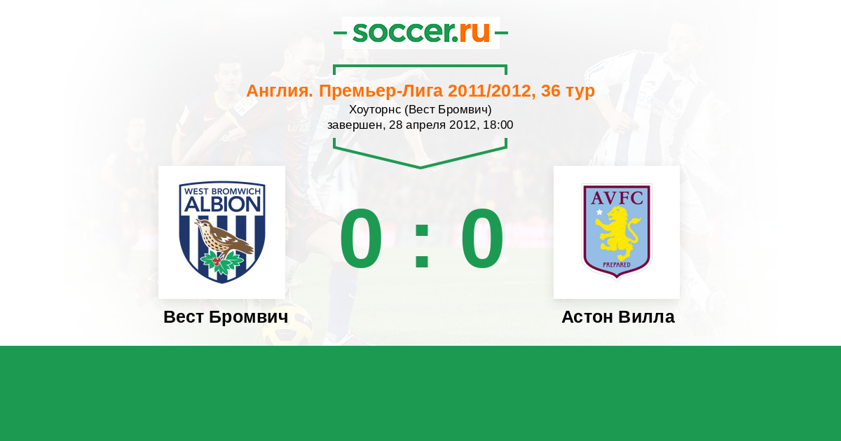 Англия. Премьер-Лига 30.09.2012 Астон Вилла Логотип футбольный клуб Астон Вилла (Бирмингем) 1:1 Логотип футбольный клуб Вест Бромвич Вест Бромвич