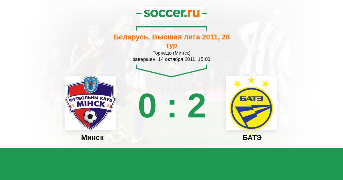 Беларусь. Высшая лига 13.08.2011 Минск Логотип футбольный клуб Минск 1:0 Логотип футбольный клуб БАТЭ (Борисов) БАТЭ