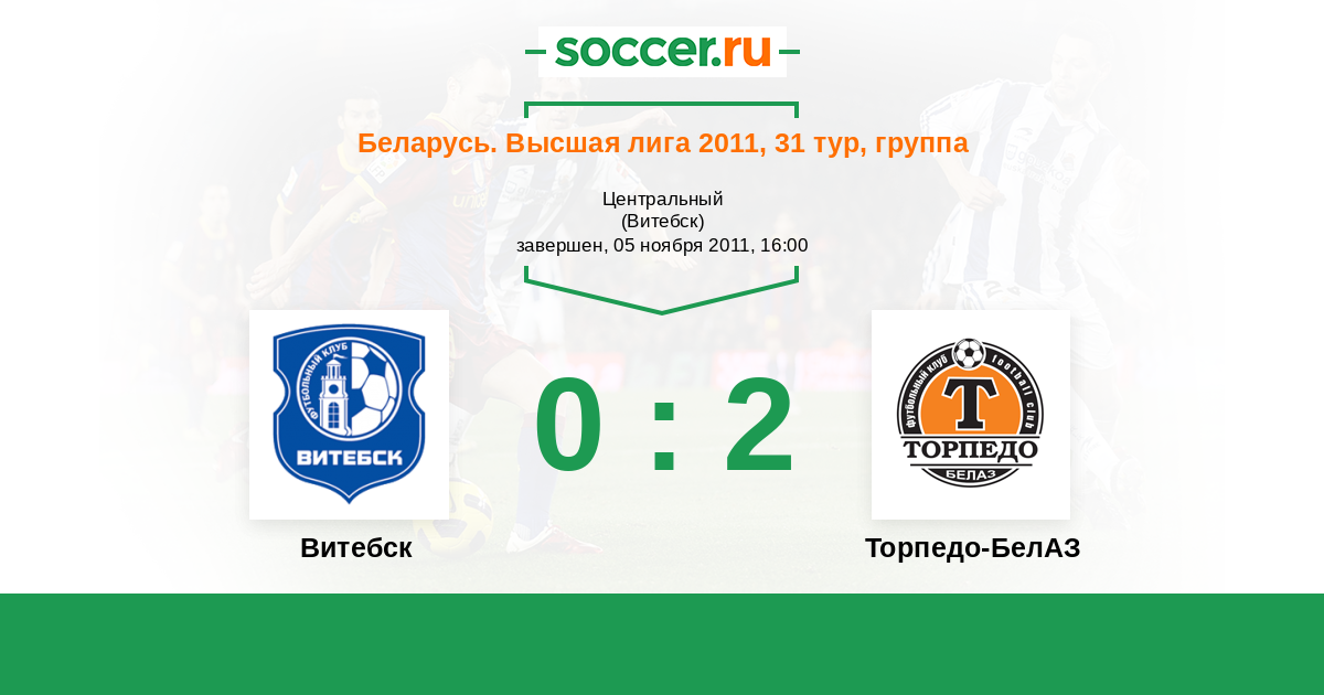Беларусь. Высшая лига 12.06.2011 Торпедо-БелАЗ Логотип футбольный клуб Торпедо-БелАЗ (Жодино) 0:3 Логотип футбольный клуб Витебск Витебск