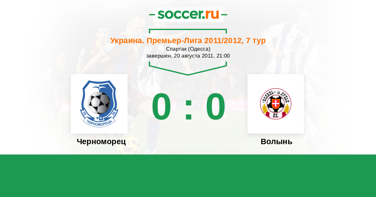 Украина. Премьер-Лига 28.07.2012 Черноморец Логотип футбольный клуб Черноморец (Одесса) 0:2 Логотип футбольный клуб Волынь (Луцк) Волынь