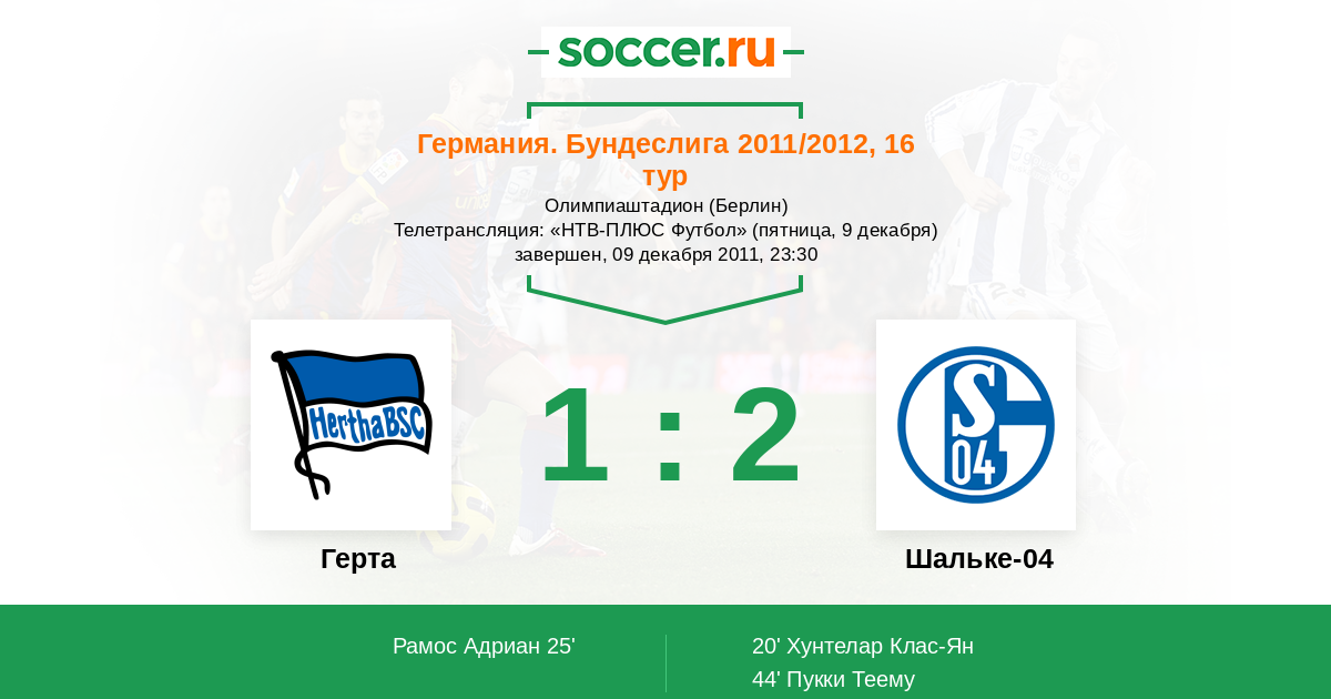 Германия. Бундеслига 06.12.2009 Шальке-04 Логотип футбольный клуб Шальке-04 (Гельзенкирхен) 2:0 Логотип футбольный клуб Герта (Берлин) Герта