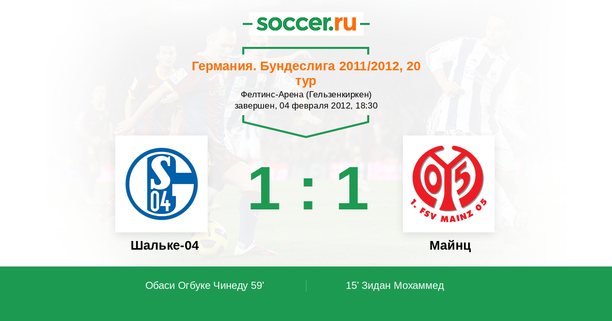 Германия. Бундеслига 25.09.2012 Шальке-04 Логотип футбольный клуб Шальке-04 (Гельзенкирхен) 3:0 Логотип футбольный клуб Майнц Майнц