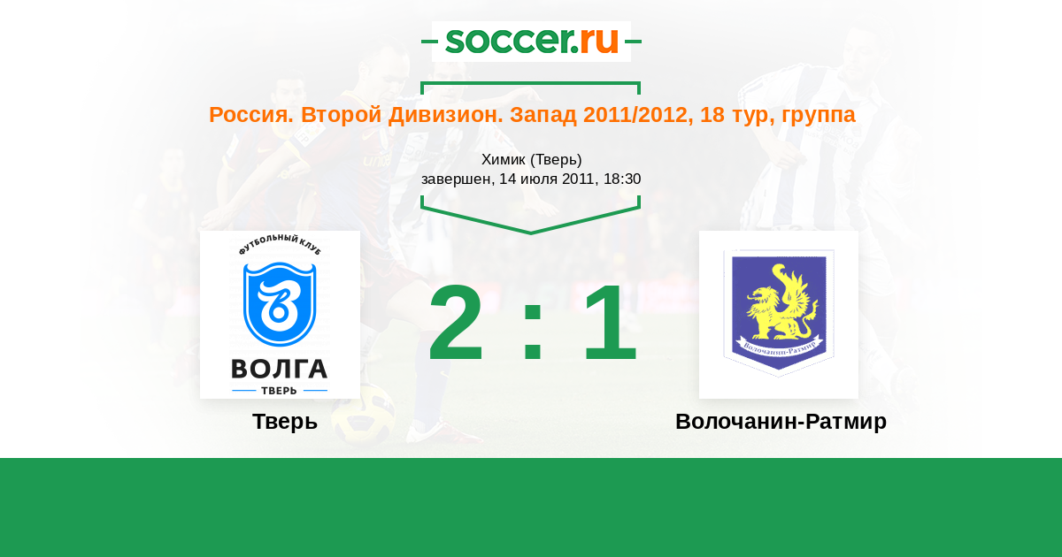 Россия. Вторая лига. Группа 2 10.10.2011 Волочанин-Ратмир Логотип футбольный клуб Волочанин-Ратмир (Вышний Волочек) 0:2 Логотип футбольный клуб Тверь Тверь