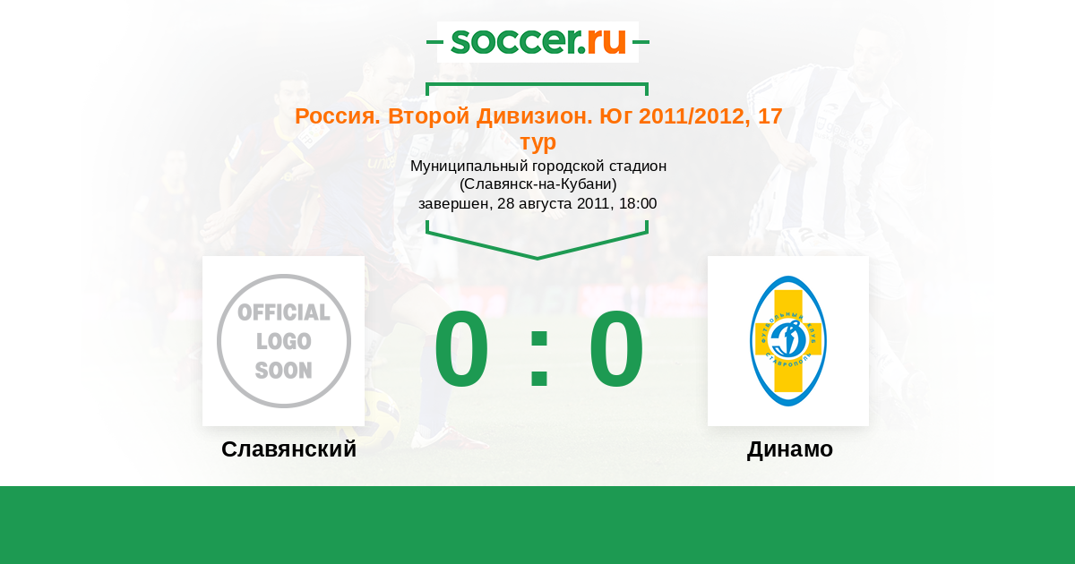 Россия. Вторая лига. Группа 1 25.05.2012 Динамо Ставрополь Логотип футбольный клуб Динамо Ставрополь 0:1 Логотип футбольный клуб Славянский (Славянск-на-Кубани) Славянский