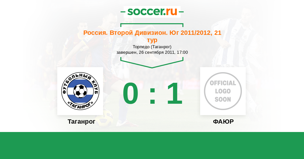 Россия. Вторая лига. Группа 1 30.10.2011 ФАЮР Логотип футбольный клуб ФАЮР (Беслан) 1:0   Торпедо Армавир