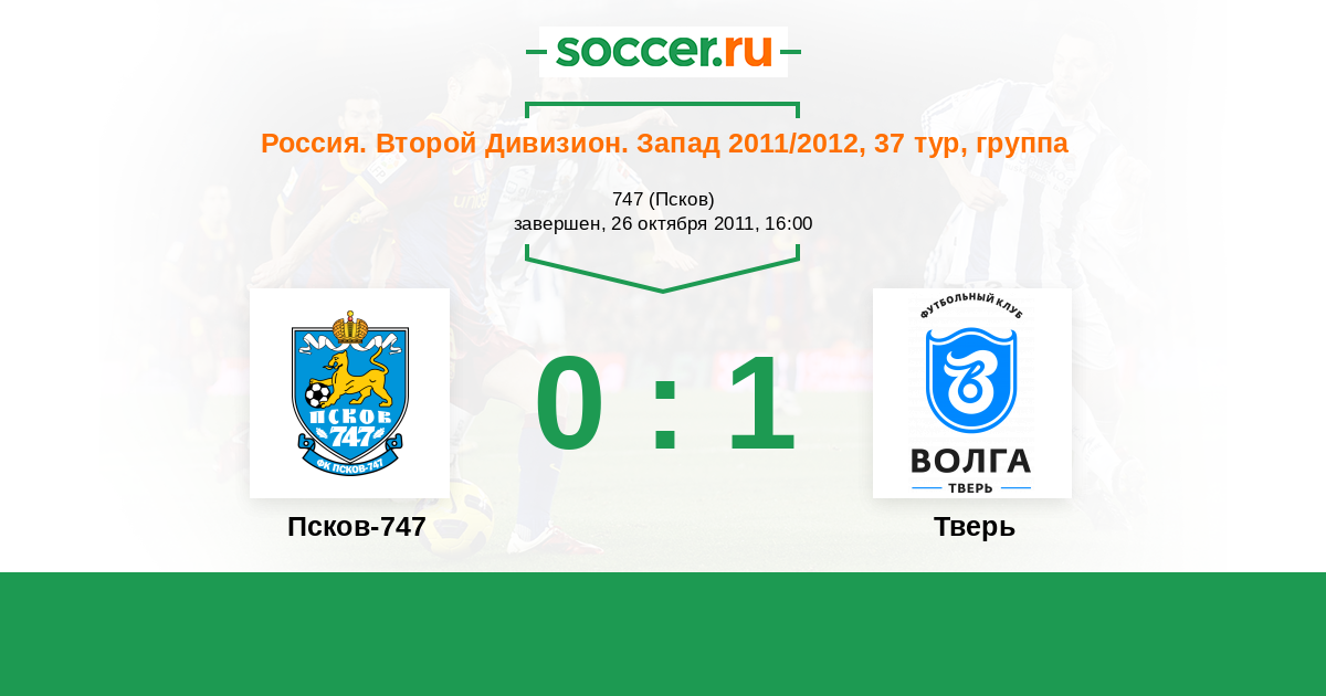 Россия. Вторая лига. Группа 2 14.10.2012 Псков-747 Логотип футбольный клуб Псков-747 1:0 Логотип футбольный клуб Тверь Тверь
