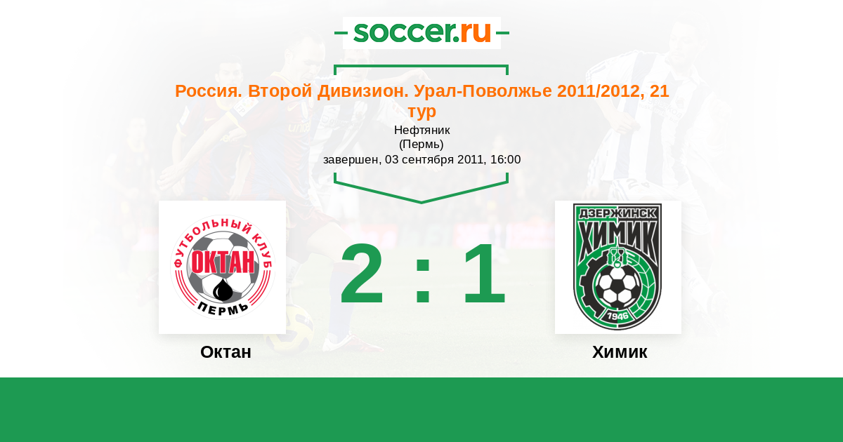 Россия. Вторая лига. Группа 4 12.06.2011 Химик Логотип футбольный клуб Химик (Дзержинск) 2:1 Логотип футбольный клуб Октан (Пермь) Октан