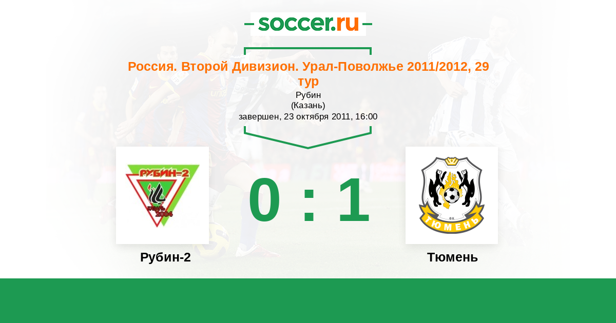 Россия. Вторая лига. Группа 4 20.07.2011 Тюмень Логотип футбольный клуб Тюмень 2:1 Логотип футбольный клуб Рубин-2 (Казань) Рубин-2