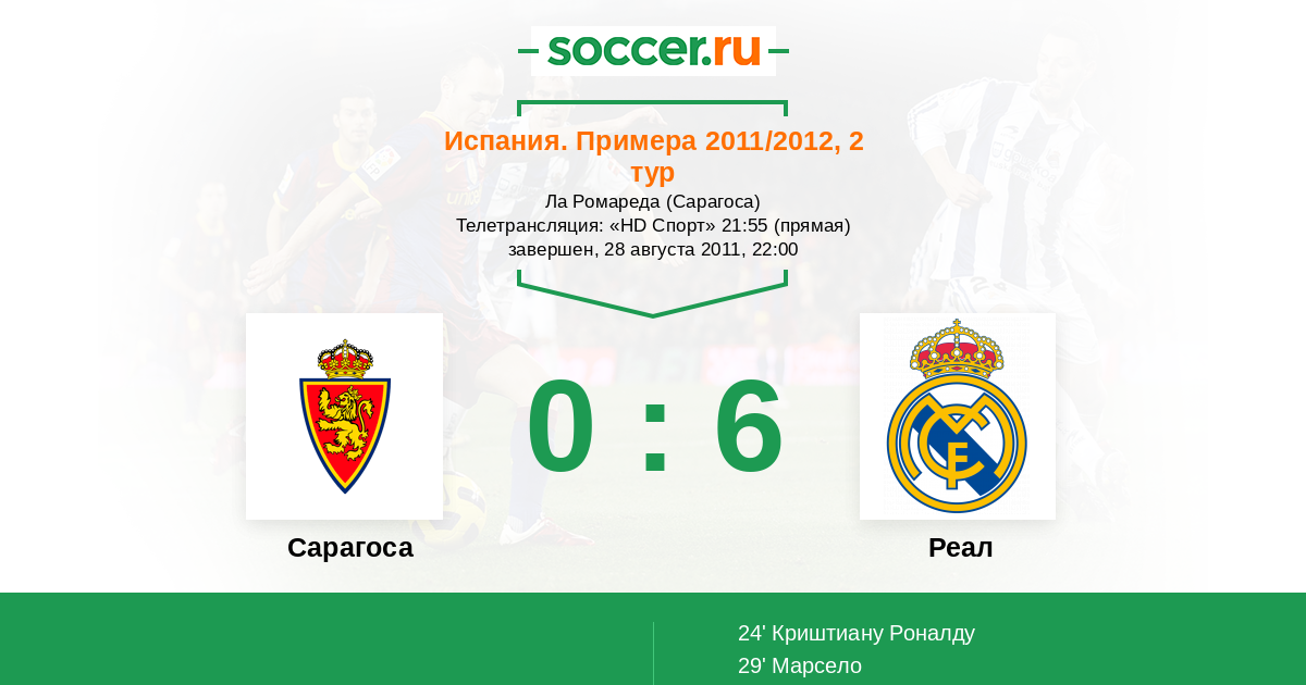 Испания. Примера 28.01.2012 Реал Логотип футбольный клуб Реал (Мадрид) 3:1 Логотип футбольный клуб Сарагоса Сарагоса