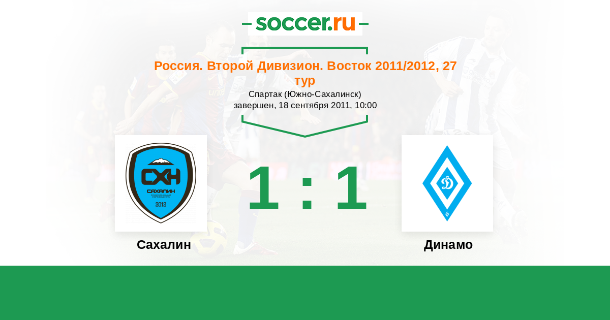 Россия. 2-й дивизион. Восток 28.09.2011 Динамо Барнаул Логотип футбольный клуб Динамо Барнаул 3:2 Логотип футбольный клуб Сахалин (Южно-Сахалинск) Сахалин