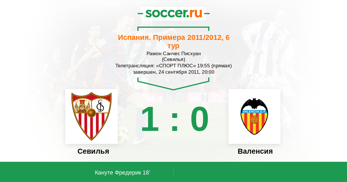 Испания. Примера 26.02.2012 Валенсия Логотип футбольный клуб Валенсия 1:2 Логотип футбольный клуб Севилья Севилья