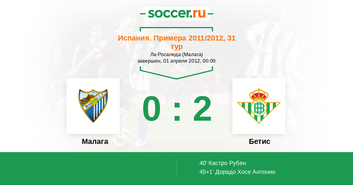 Испания. Примера 01.04.2014 Бетис Логотип футбольный клуб Бетис (Севилья) 1:2 Логотип футбольный клуб Малага Малага