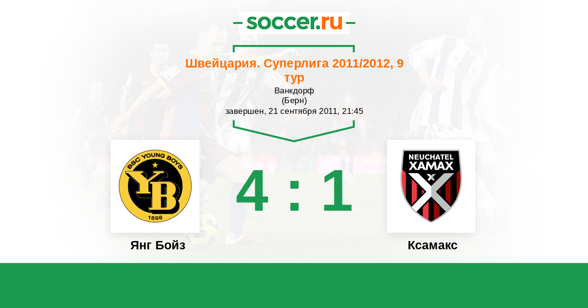 Швейцария. Суперлига 27.10.2011 Ксамакс Логотип футбольный клуб Ксамакс (Невшатель) 0:0 Логотип футбольный клуб Янг Бойз (Берн) Янг Бойз