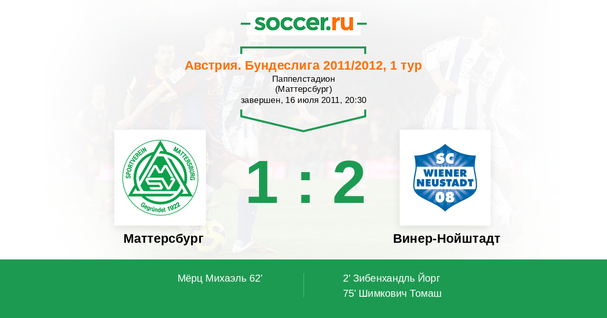 Австрия. Бундеслига 21.07.2012 Маттерсбург Логотип футбольный клуб Маттерсбург 2:0 Логотип футбольный клуб Винер-Нойштадт Винер-Нойштадт