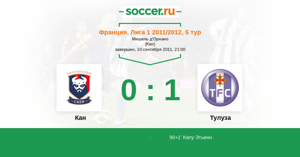 Франция. Лига 1 28.01.2012 Тулуза Логотип футбольный клуб Тулуза 1:0 Логотип футбольный клуб Кан Кан