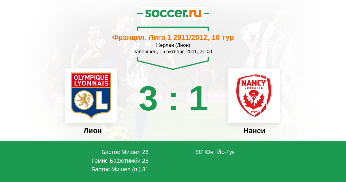 Франция. Лига 1 18.02.2011 Лион Логотип футбольный клуб Лион 4:0 Логотип футбольный клуб Нанси Нанси