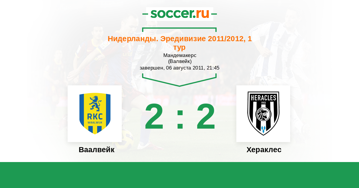Нидерланды. Эредивизи 15.04.2012 Хераклес Логотип футбольный клуб Хераклес (Алмело) 1:1 Логотип футбольный клуб Ваалвейк (Валвейк) Ваалвейк