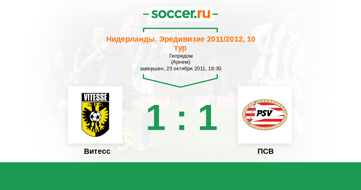 Нидерланды. Эредивизи 27.10.2010 Витесс Логотип футбольный клуб Витесс (Арнем) 0:2 Логотип футбольный клуб ПСВ (Эйндховен) ПСВ