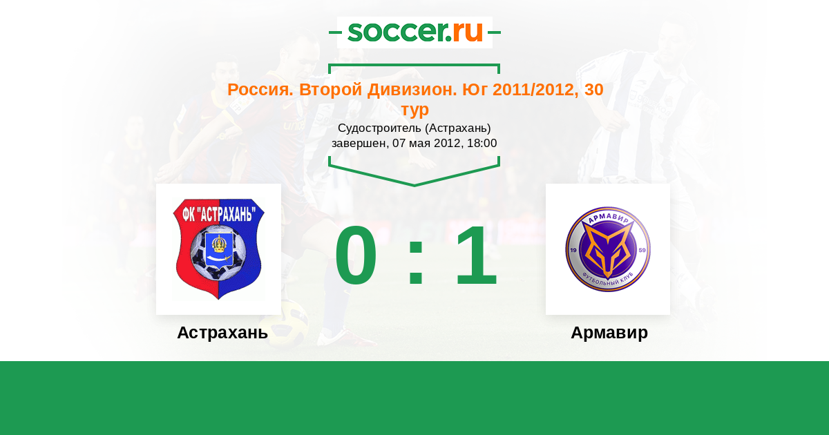 Россия. Вторая лига. Группа 1 07.08.2011 Торпедо Армавир Логотип футбольный клуб Торпедо Армавир 1:0 Логотип футбольный клуб Астрахань Астрахань