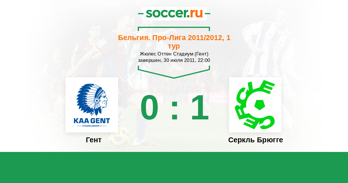Бельгия. Про-Лига 16.12.2011 Серкль Брюгге Логотип футбольный клуб Серкль Брюгге 0:1 Логотип футбольный клуб Гент Гент