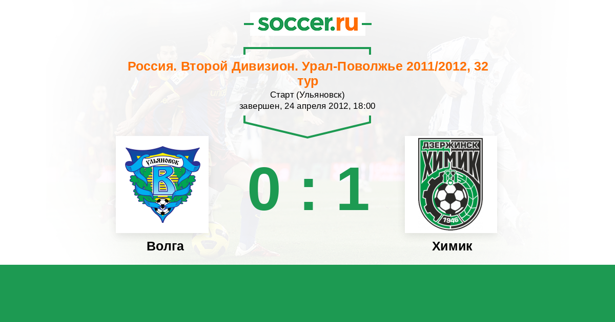 Россия. Вторая лига. Группа 4 24.05.2011 Волга Логотип футбольный клуб Волга (Ульяновск) 0:2 Логотип футбольный клуб Химик (Дзержинск) Химик