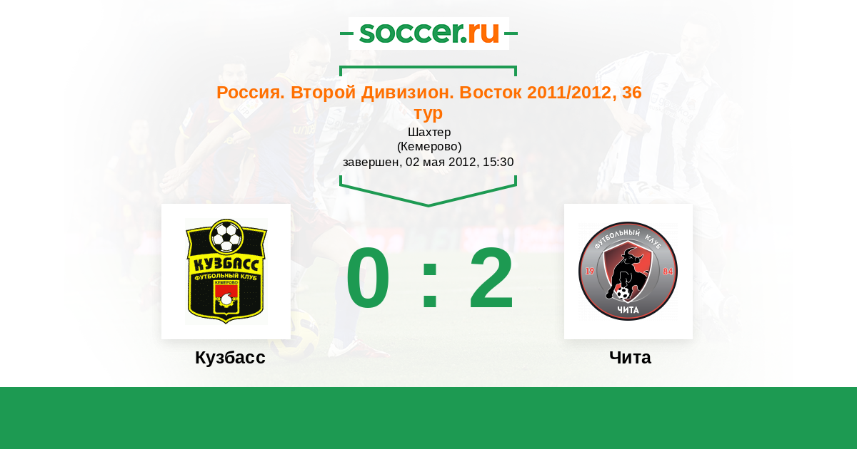 Россия. 2-й дивизион. Восток 02.05.2012 Кузбасс Логотип футбольный клуб Кузбасс (Кемерово) 0:2 Логотип футбольный клуб Чита Чита