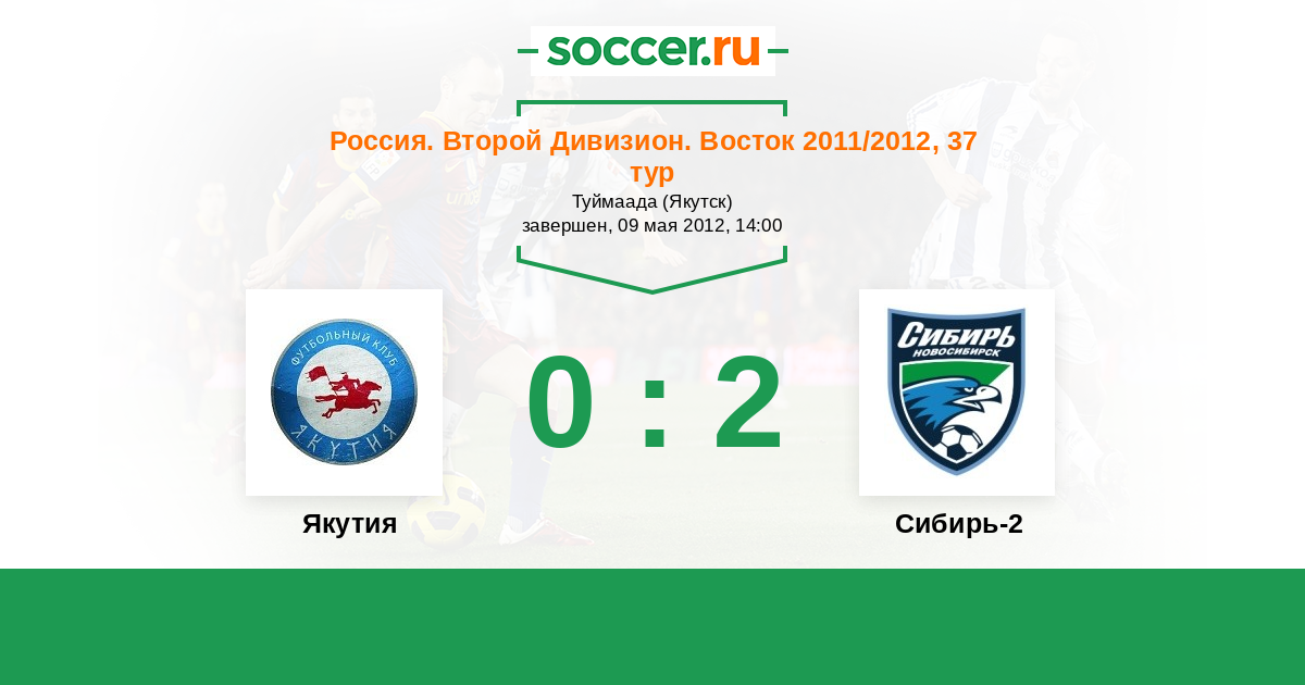 Россия. 2-й дивизион. Восток 05.06.2011 Якутия Логотип футбольный клуб Якутия (Якутск) 3:2 Логотип футбольный клуб Сибирь-2 (Новосибирск) Сибирь-2
