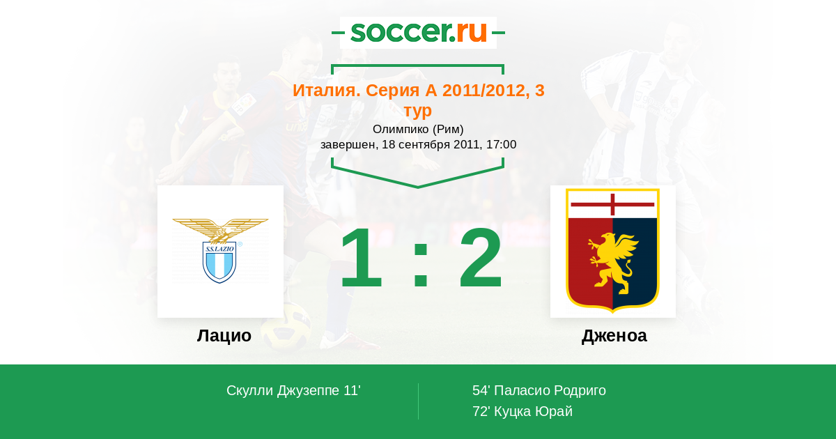 Италия. Серия А 05.02.2012 Дженоа Логотип футбольный клуб Дженоа (Генуя) 3:2 Логотип футбольный клуб Лацио (Рим) Лацио